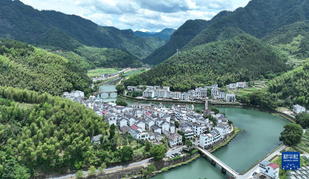 綠水青山環(huán)抱的杭州淳安下姜村(7月3日攝,無(wú)人機照片)。