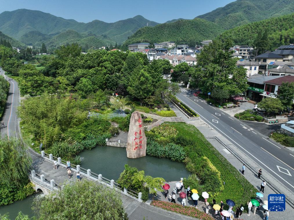 游客在安吉余村參觀(guān)(8月11日攝,無(wú)人機照片)。