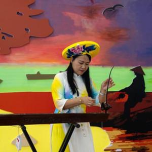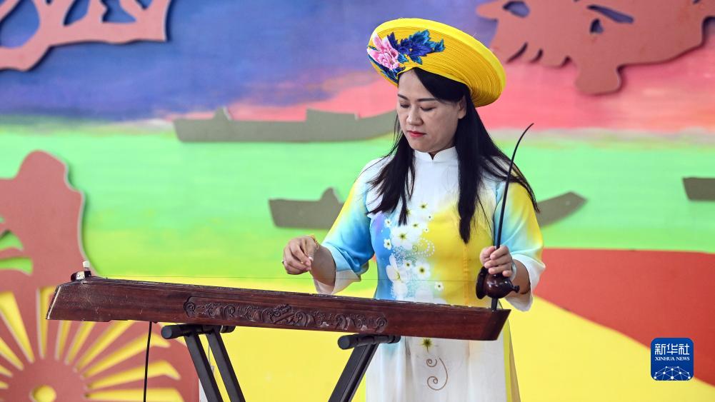 8月13日,在東興京族博物館,獨弦琴傳承人蘇海珍為游客演奏。