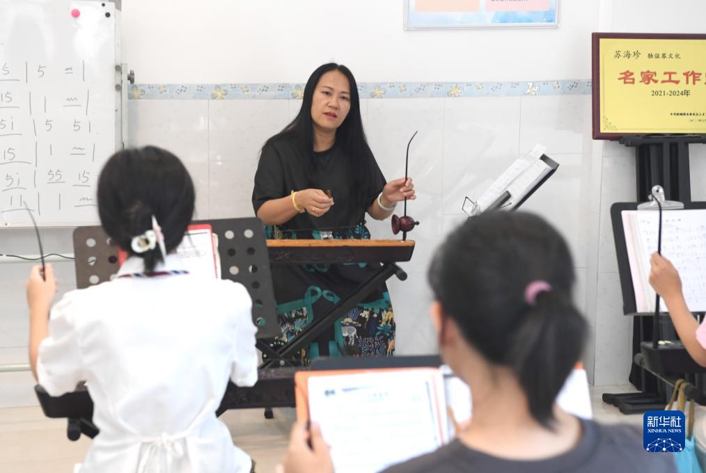 8月13日,東興京族博物館館長(cháng)、獨弦琴傳承人蘇海珍在指導學(xué)生練習。
