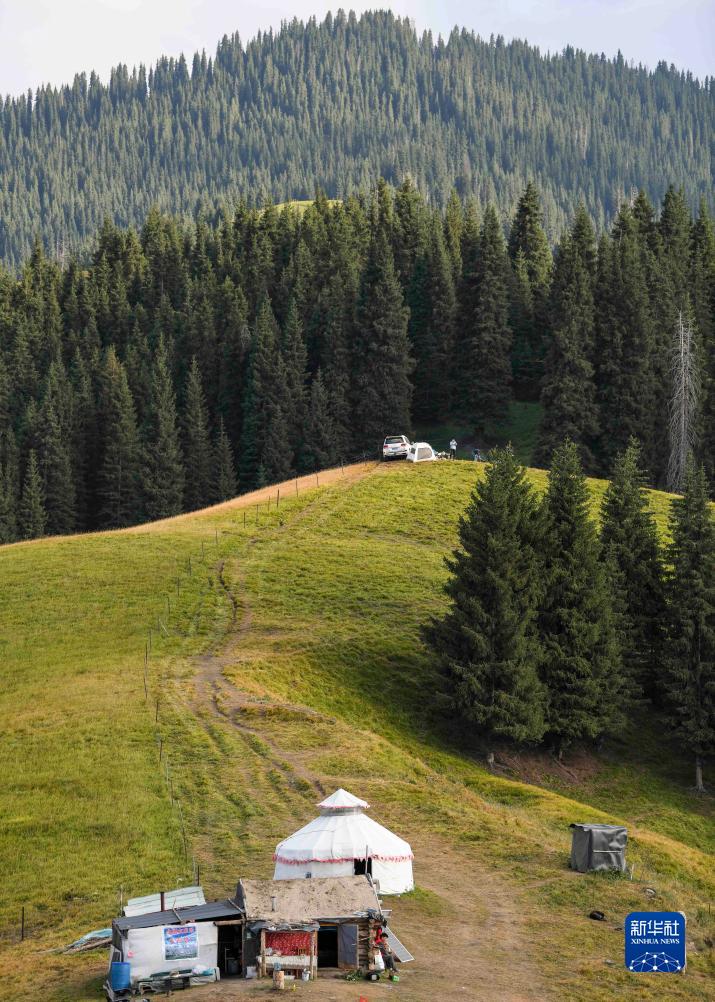 索爾巴斯陶(哈薩克語(yǔ),意為“堿泉”)地處新疆天山山脈中部的北麓,平均海拔2000多米,是新疆昌吉市廟爾溝鄉重要的高山牧場(chǎng)。走進(jìn)這里,滿(mǎn)目生機勃勃:草原隨著(zhù)山勢起伏,森林遍布,牧民居住的氈房和小木屋點(diǎn)綴其間,牛羊悠閑覓食……美不勝收。良好的生態(tài)環(huán)境承載著(zhù)當地牧民的生產(chǎn)生活,同時(shí)也吸引人們前來(lái)露營(yíng)、賞景、體驗牧區傳統與現代并存的生活方式。