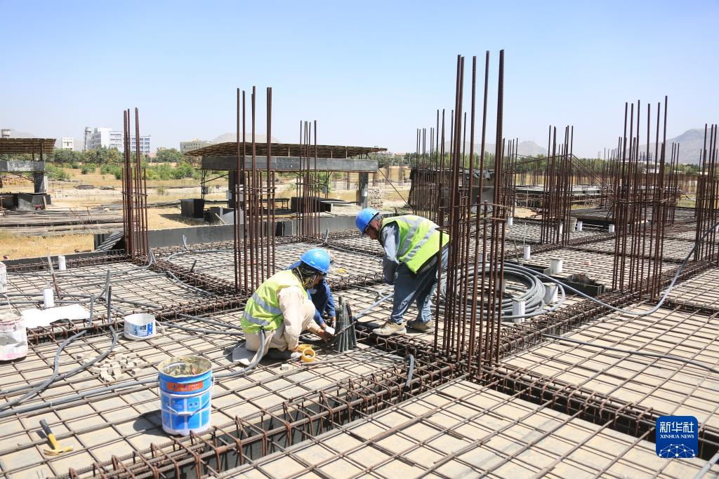 8月13日,阿富汗工人正在喀布爾西郊一處中企承建項目工地工作。