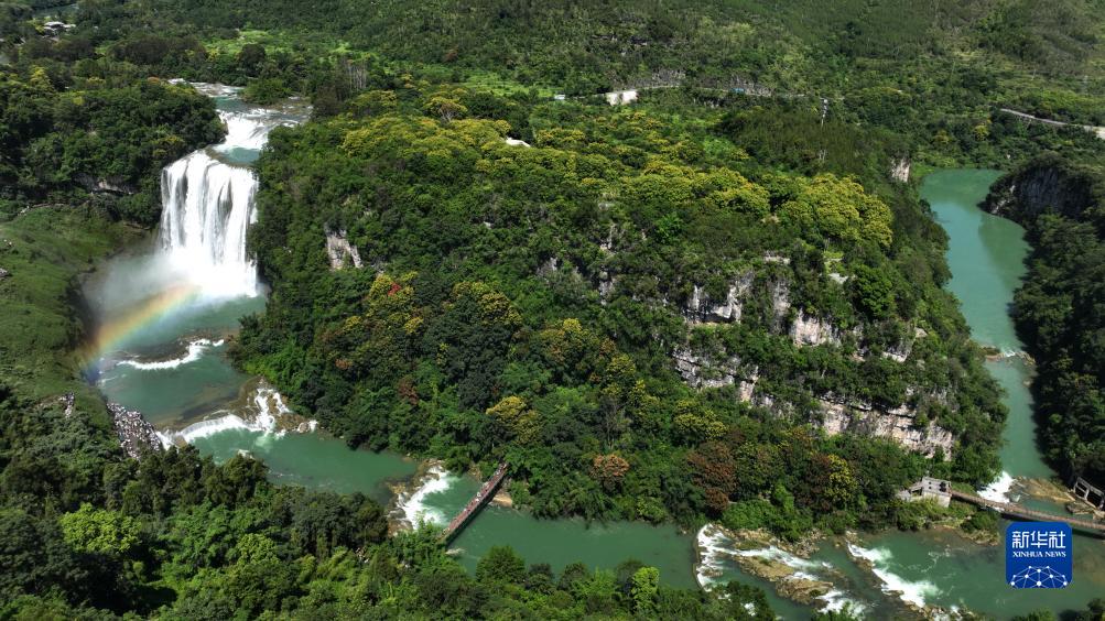 8月16日拍攝的貴州省安順市黃果樹(shù)瀑布景區(無(wú)人機照片)。