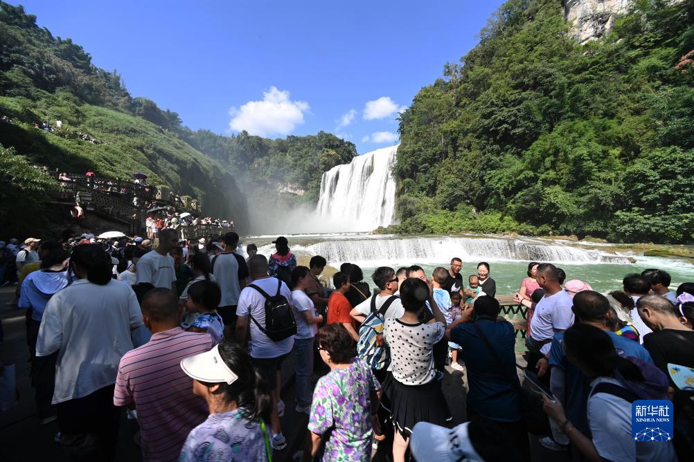 初秋時(shí)節,位于貴州省安順市的黃果樹(shù)瀑布景區進(jìn)入一年中的最佳觀(guān)賞期。大瀑布奔騰而下、氣勢磅礴,前來(lái)觀(guān)賞游玩的游客絡(luò )繹不絕。