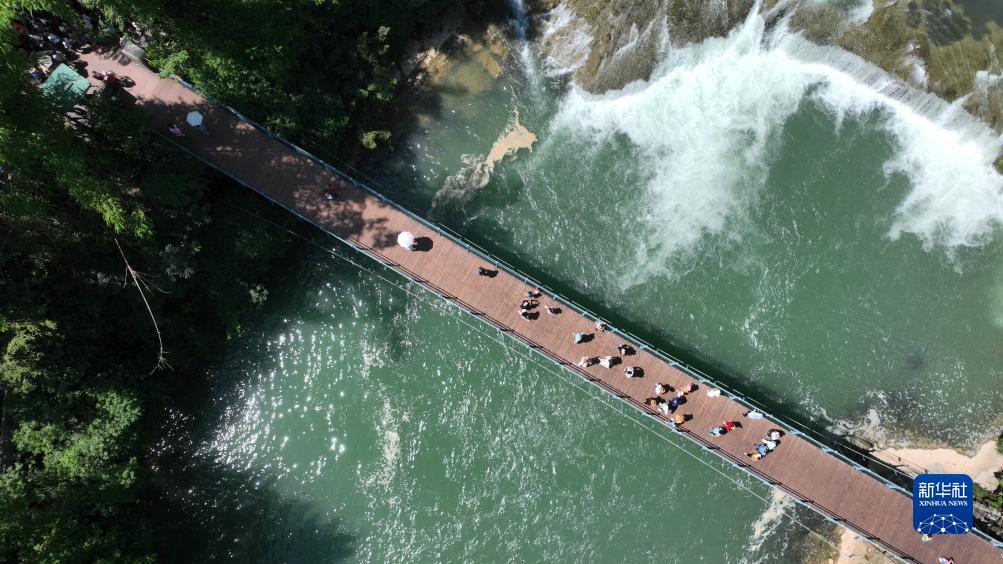 8月16日,游客在貴州省安順市黃果樹(shù)瀑布景區游覽(無(wú)人機照片)。