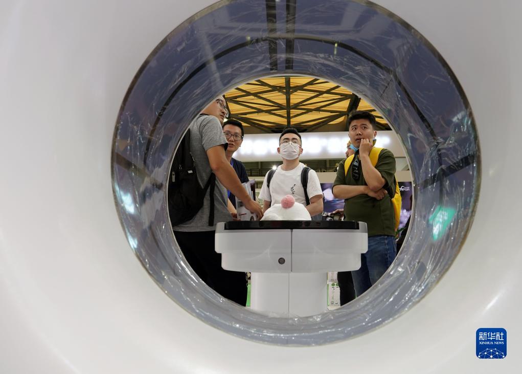 8月16日,觀(guān)眾在第25屆亞洲寵物展覽會(huì )寵物醫療館了解動(dòng)物專(zhuān)用CT機。
