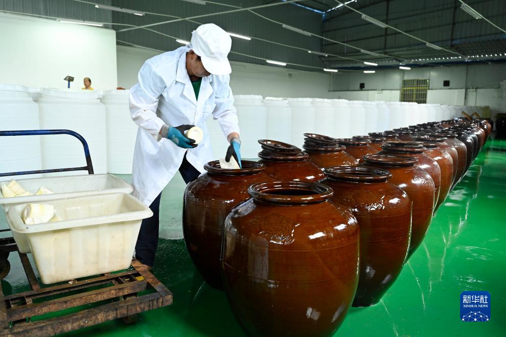 8月16日,在廣西柳州市柳城縣沙埔鎮古仁村酸筍加工廠(chǎng),工人在車(chē)間里腌制酸筍。