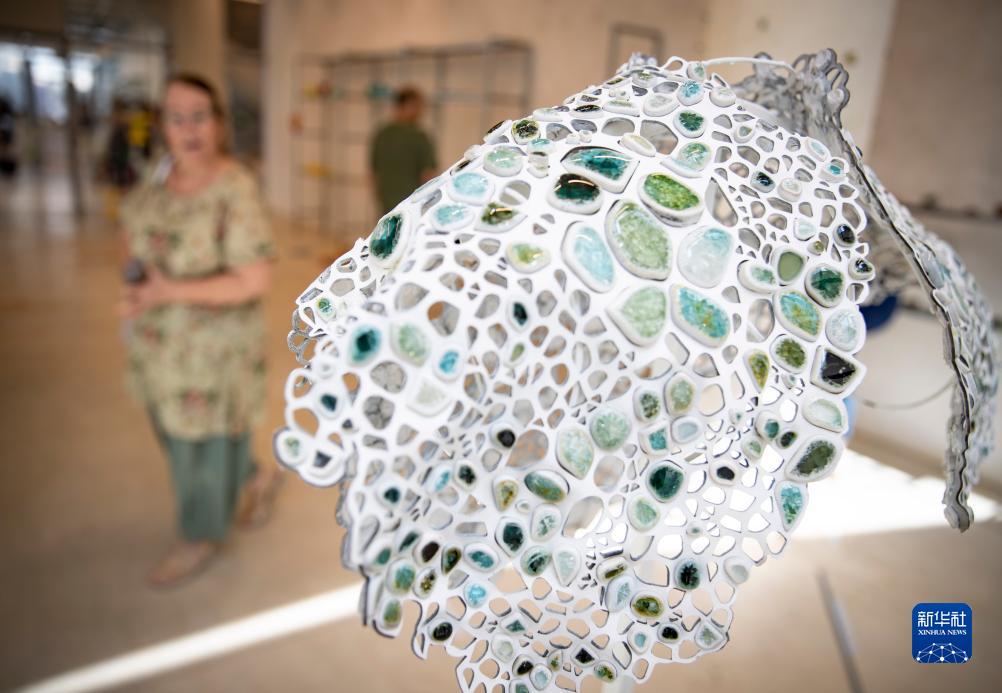 8月15日,觀(guān)眾在以色列比撒列藝術(shù)設計學(xué)院畢業(yè)展上參觀(guān)。