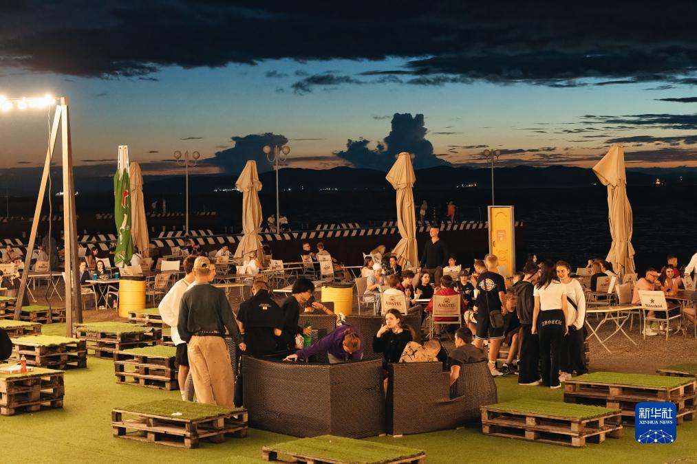 俄羅斯遠東城市符拉迪沃斯托克三面環(huán)海,旅游業(yè)較發(fā)達,每當夜幕降臨時(shí),人們來(lái)到阿穆?tīng)枮车暮_厞蕵?lè )休閑。
