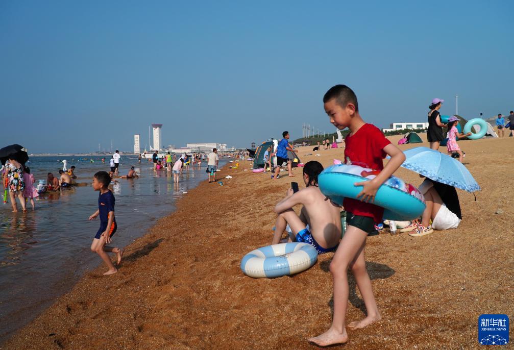 8月16日,游客在山東省萊州市三山島的海濱風(fēng)景區游玩。