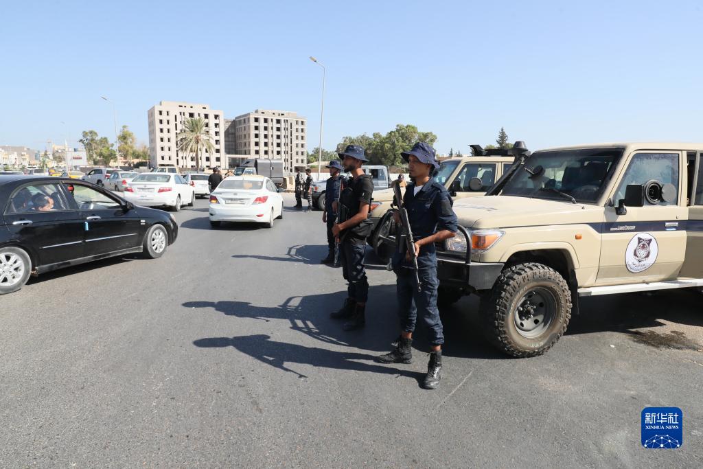 8月16日,利比亞沖突?;鸷?,利比亞公共安全部門(mén)人員在的黎波里的艾因扎拉區保障安全。