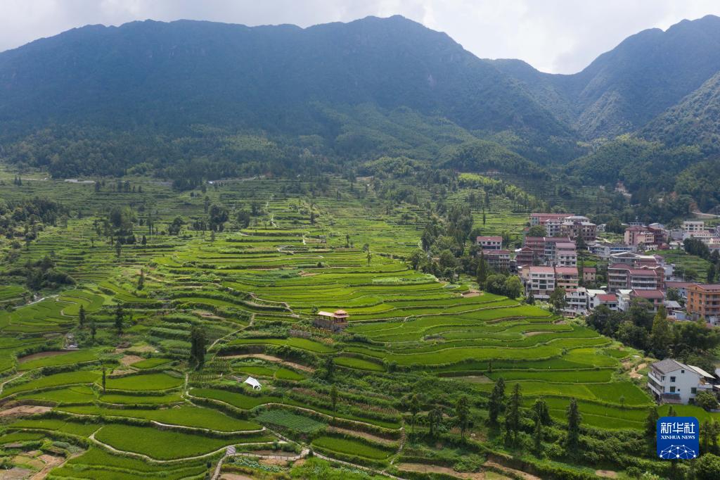 8月17日,空中俯瞰青田縣方山鄉梯田,這里也是稻魚(yú)共生系統的核心保護區(無(wú)人機照片)。