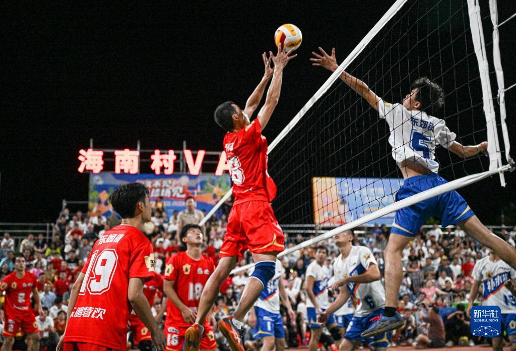 在“村排”決賽中,東郊鎮隊(右)對陣東閣鎮隊(8月13日攝)。