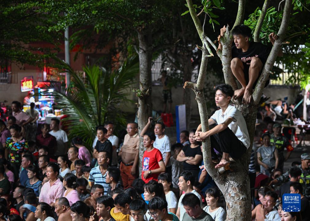 人們在海南省文昌市龍樓鎮觀(guān)看“村排”比賽(7月1日攝)。