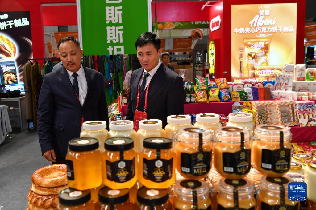 8月17日,來(lái)自吉爾吉斯斯坦的客商在2023(中國)亞歐商品貿易博覽會(huì )上查看本國產(chǎn)的蜂蜜。