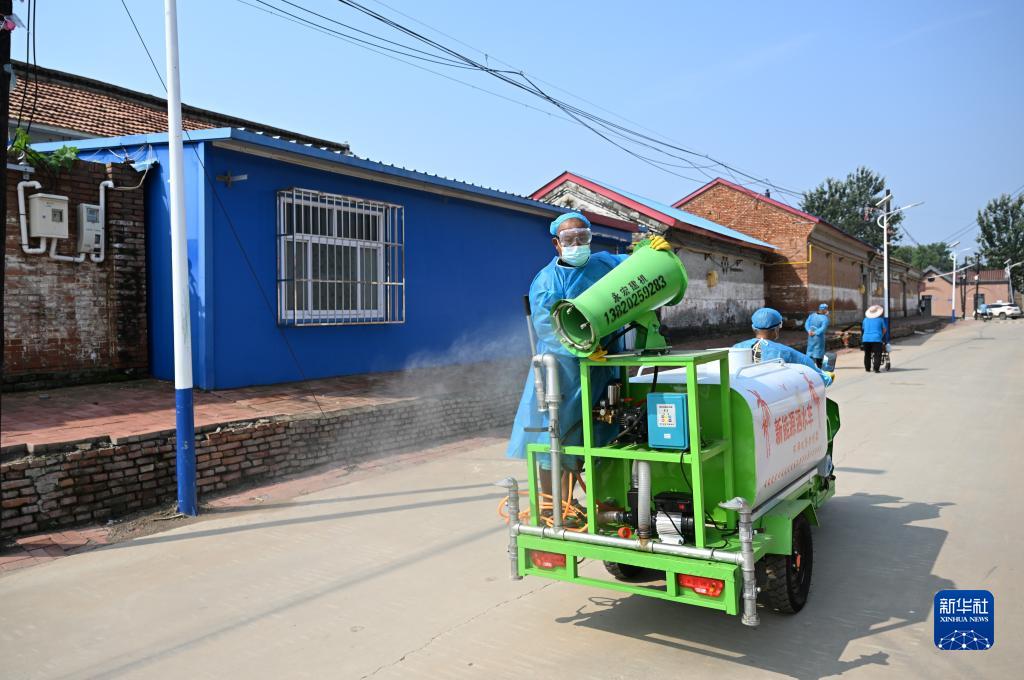 8月17日,工作人員在天津市武清區黃花店鎮邵七堤村進(jìn)行環(huán)境消殺作業(yè)。