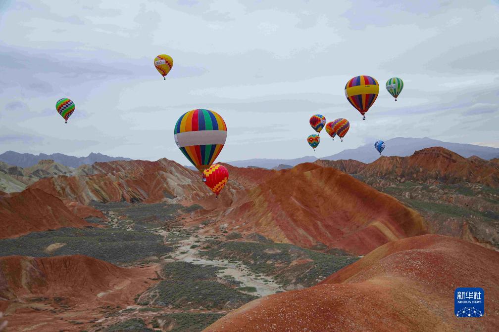 當日,甘肅張掖第三屆張掖七彩丹霞熱氣球嘉年華在七彩丹霞景區拉開(kāi)帷幕。來(lái)自全國各地的熱氣球運動(dòng)員駕乘熱氣球,在七彩丹霞上空進(jìn)行飛行表演,上演熱氣球與丹霞的美麗邂逅。