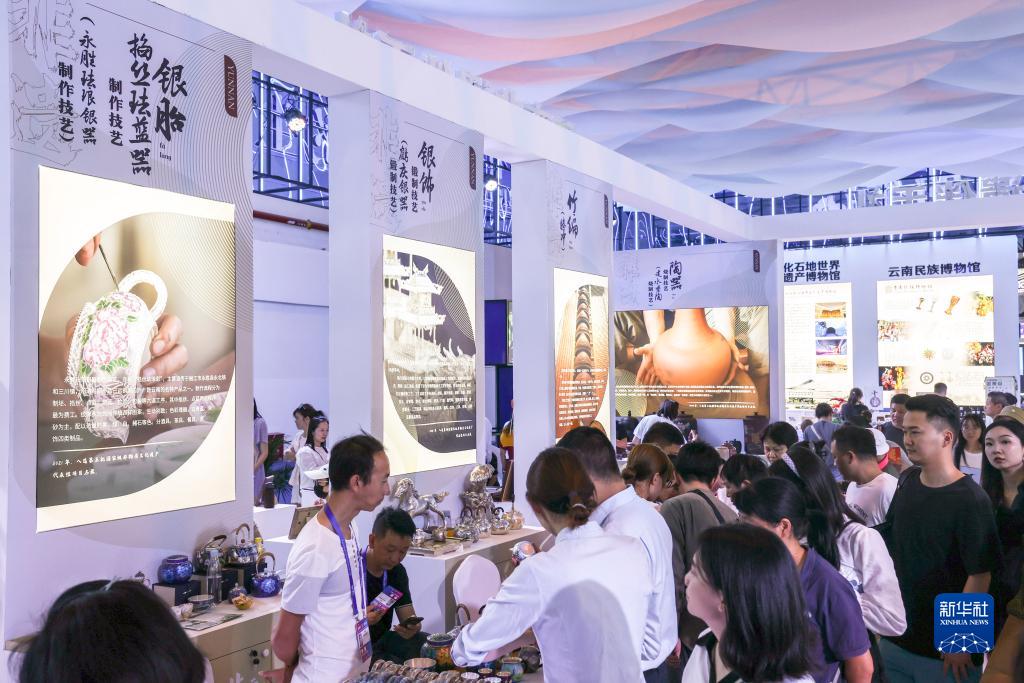 8月17日,參觀(guān)者在第七屆中國—南亞博覽會(huì )云南非遺伴手禮展區參觀(guān)。