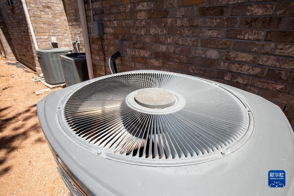 這是8月17日在美國得克薩斯州弗里斯科市拍攝的三臺高速運轉的空調。