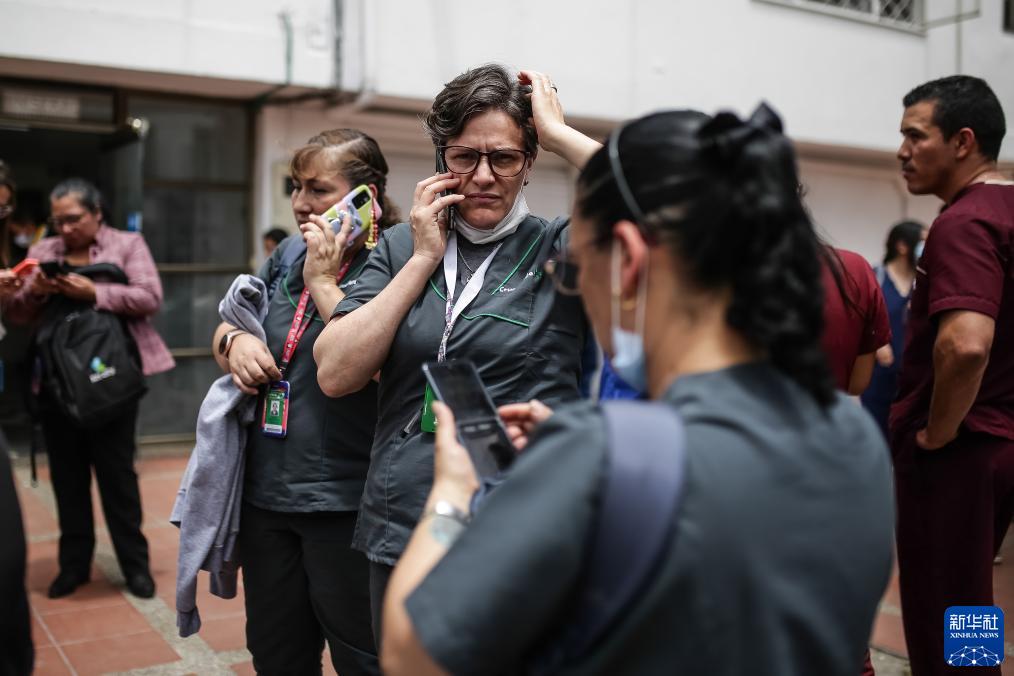 8月17日,在哥倫比亞首都波哥大,人們在地震發(fā)生后的街頭避難。
