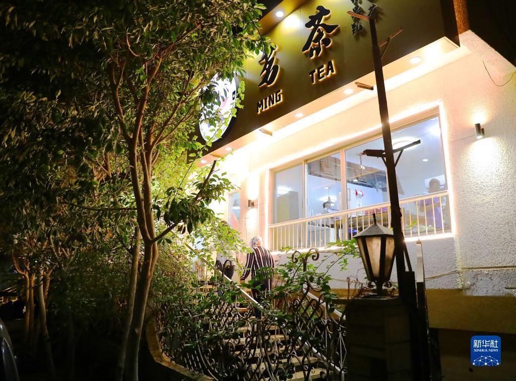 人們在夜間光顧埃及開(kāi)羅的一家中國奶茶店(7月23日攝)。