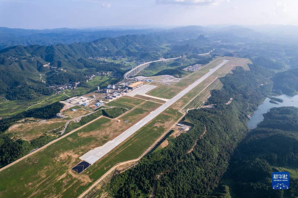 這是8月17日在湖南省湘西土家族苗族自治州花垣縣花垣鎮老天坪村拍攝的湘西邊城機場(chǎng)(無(wú)人機照片)。
