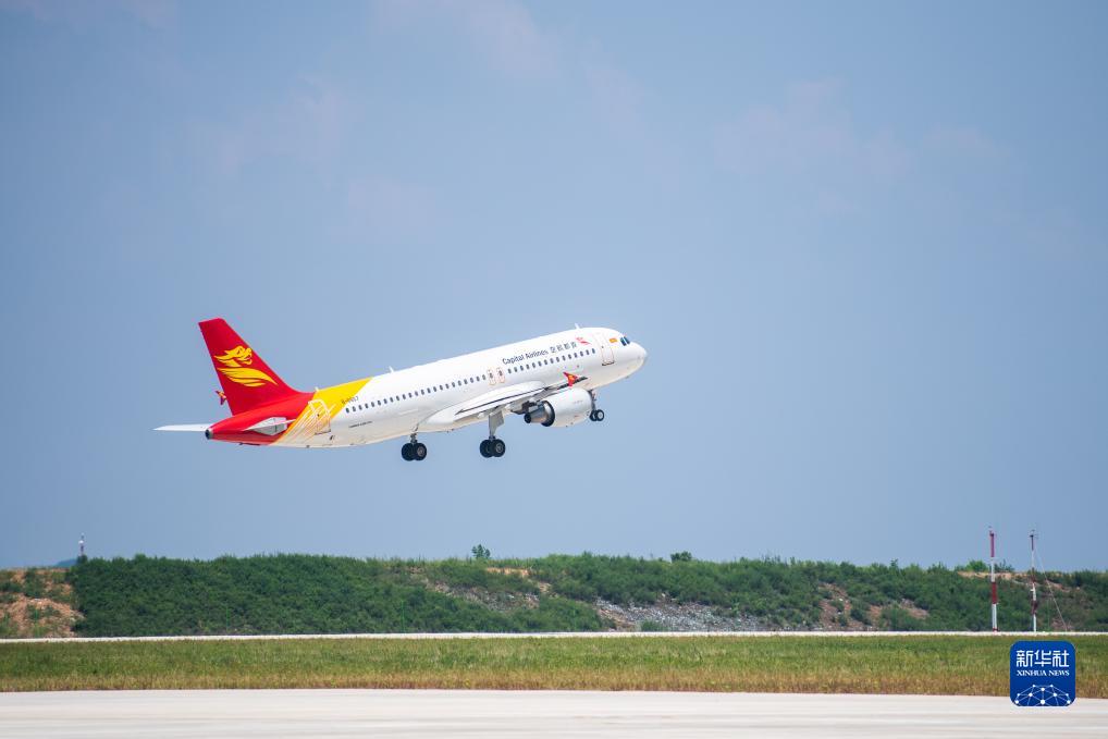 8月18日,飛機在湖南湘西邊城機場(chǎng)起飛。