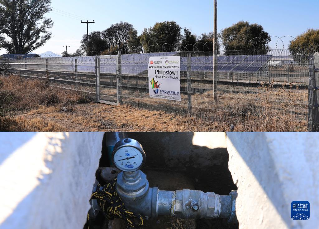 這是8月11日在南非北開(kāi)普省德阿鎮拍攝的由龍源南非公司修建的一個(gè)地下水引水項目(拼版照片)。
