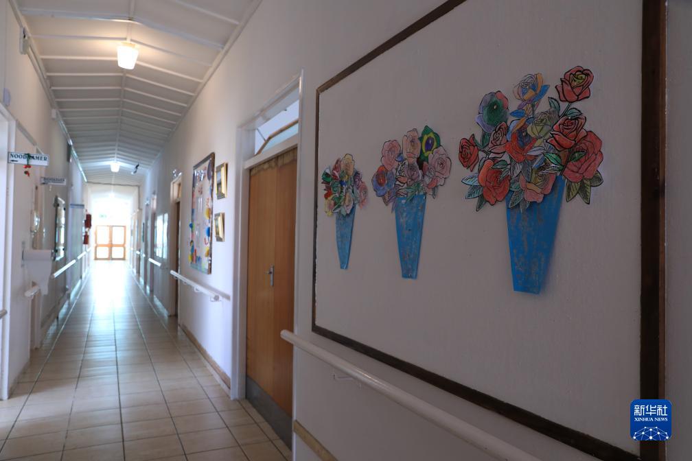 8月10日,在南非北開(kāi)普省德阿鎮一所養老院,墻上裝飾著(zhù)老人手工制作的藝術(shù)品。