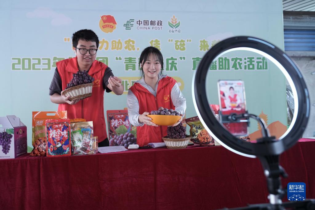 當日,共青團重慶市北碚區委組織參加“返家鄉”“三下鄉”社會(huì )實(shí)踐活動(dòng)的大學(xué)生走進(jìn)葡萄園,開(kāi)展“青耘重慶”直播助農活動(dòng),幫助果農拓寬銷(xiāo)售渠道。今年暑期,共青團重慶市委聯(lián)合多家單位啟動(dòng)了“青耘重慶”直播助農活動(dòng)暨大學(xué)生公益助農營(yíng)銷(xiāo)挑戰賽,組織多個(gè)高校的大學(xué)生開(kāi)展為期兩個(gè)多月的公益助農銷(xiāo)售活動(dòng)。連日來(lái),大學(xué)生們來(lái)到田間地頭,通過(guò)直播帶貨、創(chuàng )意視頻、推文宣傳等形式,擴大當地農特產(chǎn)品影響力和知名度。