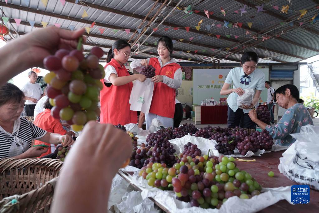 當日,共青團重慶市北碚區委組織參加“返家鄉”“三下鄉”社會(huì )實(shí)踐活動(dòng)的大學(xué)生走進(jìn)葡萄園,開(kāi)展“青耘重慶”直播助農活動(dòng),幫助果農拓寬銷(xiāo)售渠道。今年暑期,共青團重慶市委聯(lián)合多家單位啟動(dòng)了“青耘重慶”直播助農活動(dòng)暨大學(xué)生公益助農營(yíng)銷(xiāo)挑戰賽,組織多個(gè)高校的大學(xué)生開(kāi)展為期兩個(gè)多月的公益助農銷(xiāo)售活動(dòng)。連日來(lái),大學(xué)生們來(lái)到田間地頭,通過(guò)直播帶貨、創(chuàng )意視頻、推文宣傳等形式,擴大當地農特產(chǎn)品影響力和知名度。