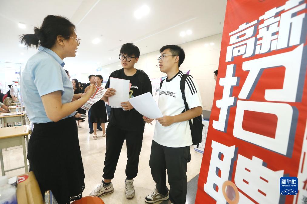 8月18日,大學(xué)生在招聘會(huì )上了解崗位信息。