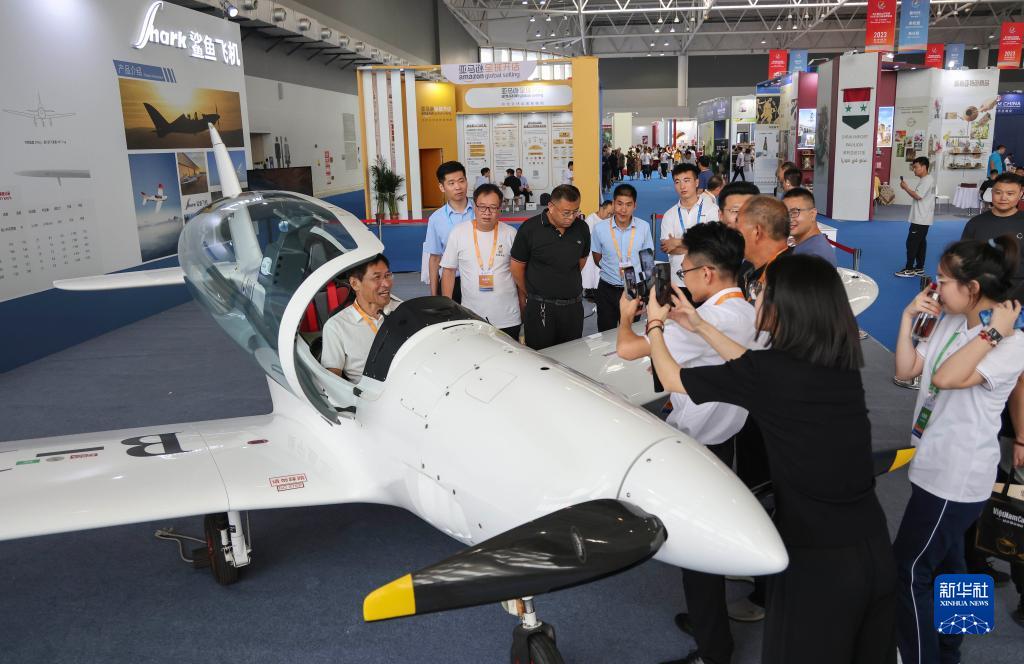 8月18日,客商在第三屆RCEP區域(山東)進(jìn)口商品博覽會(huì )上了解體驗一款國產(chǎn)小飛機。