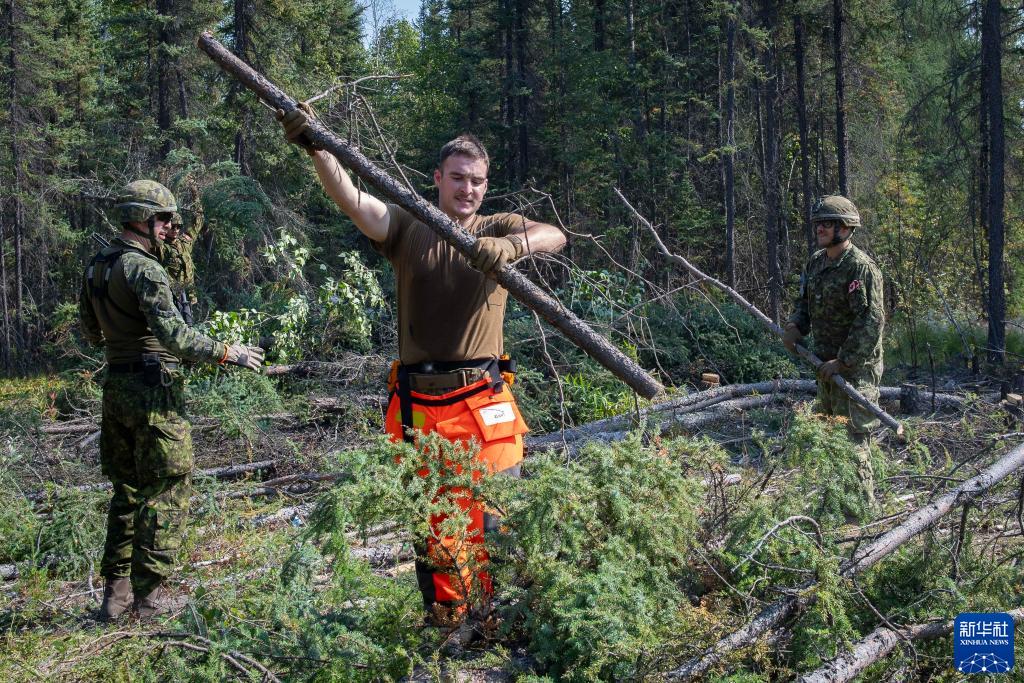 這張加拿大武裝部隊8月16日拍攝的照片顯示武裝部隊人員在耶洛奈夫一處森林地區構建防火帶。
