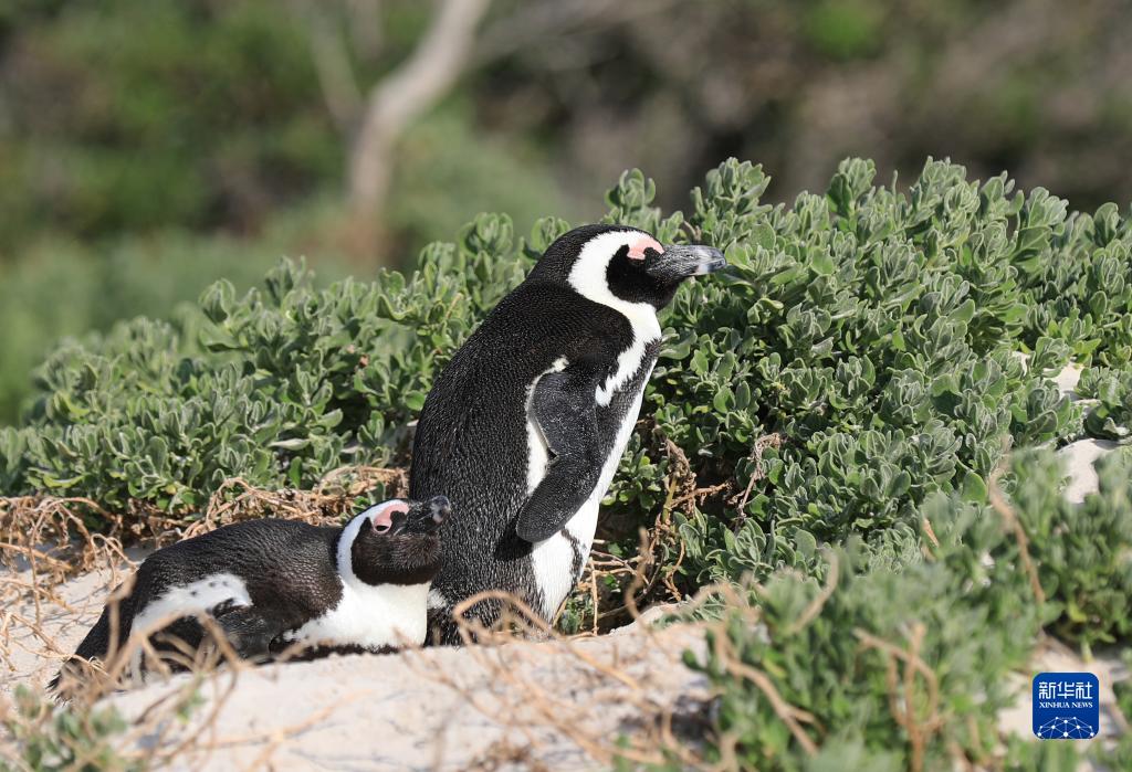 這是8月12日在南非西蒙鎮的博爾德斯海灘上拍攝的非洲企鵝。