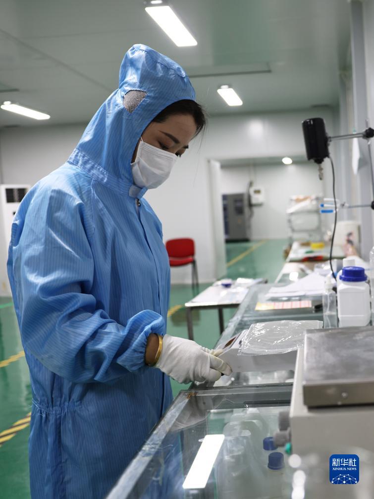 8月19日,工人在涿州市柯林電子產(chǎn)品有限公司散熱冷凝膠車(chē)間對樣品進(jìn)行稱(chēng)重。