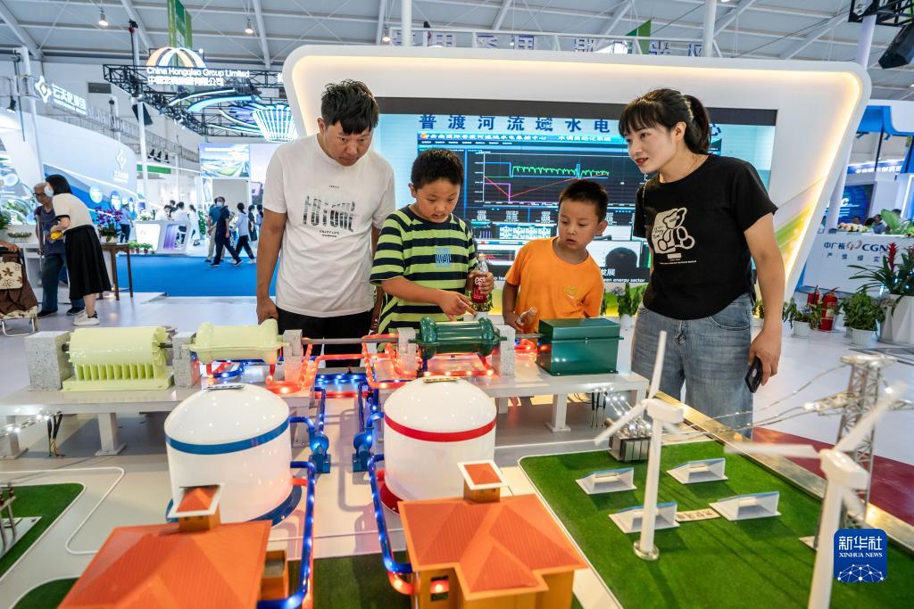8月19日,在第七屆中國—南亞博覽會(huì )國家電投展區,家長(cháng)帶著(zhù)孩子參觀(guān)展覽。