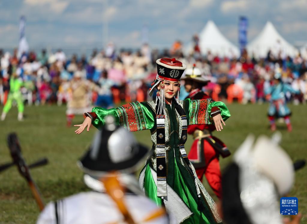 8月18日,在蒙古國泰吉山谷,演員在文化節開(kāi)幕式上表演文藝節目。
