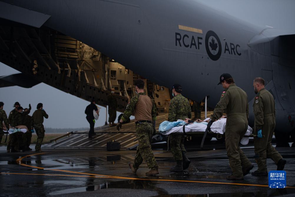 8月18日,加拿大武裝部隊人員在西北地區耶洛奈夫機場(chǎng)轉移病患。