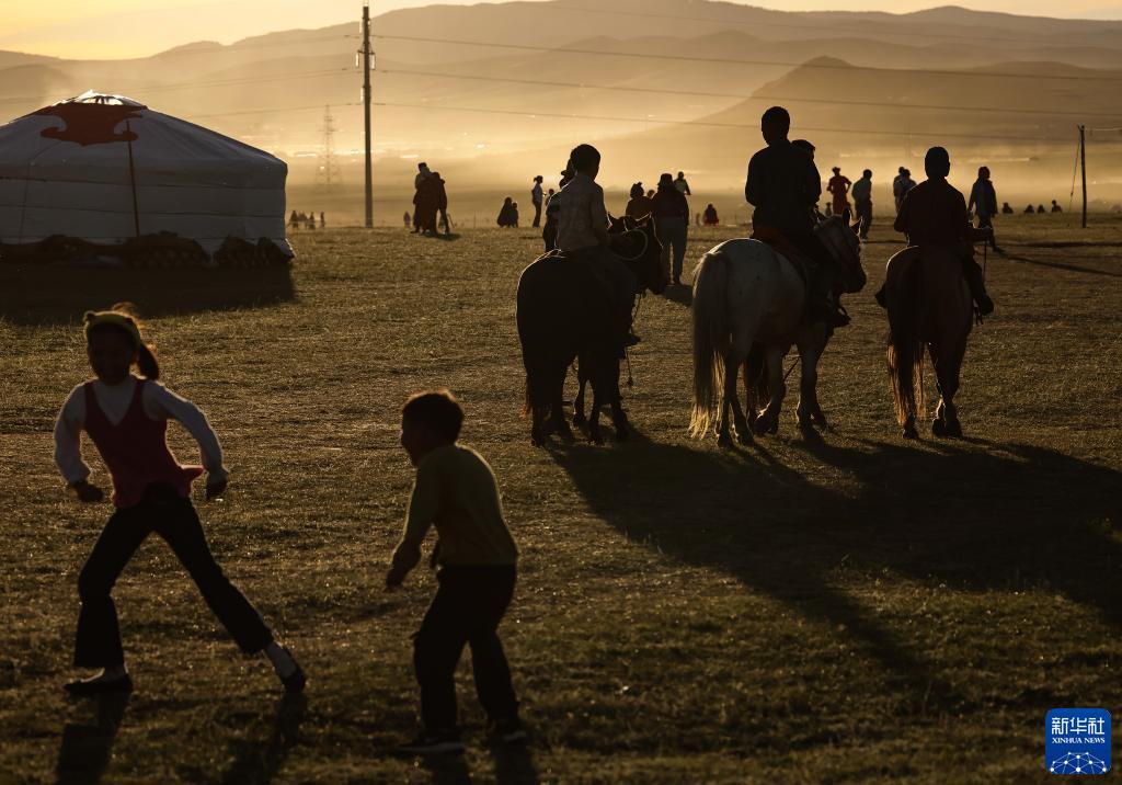 散去了白天的喧囂,距離蒙古國首都烏蘭巴托40多公里的泰吉山谷又恢復了往日的寧靜,夕陽(yáng)給山谷和牧場(chǎng)披上了金色的盛裝。參加2023年度“游牧民族”世界文化節的人們,有的選擇在此宿營(yíng),等待次日繼續參加文化節的各種活動(dòng),有的選擇駕車(chē)返回烏蘭巴托或附近的牧點(diǎn)。牧人們將放牧的馬匹收攏并帶回家中,不知疲倦的孩子們繼續在夕陽(yáng)中嬉戲打鬧。