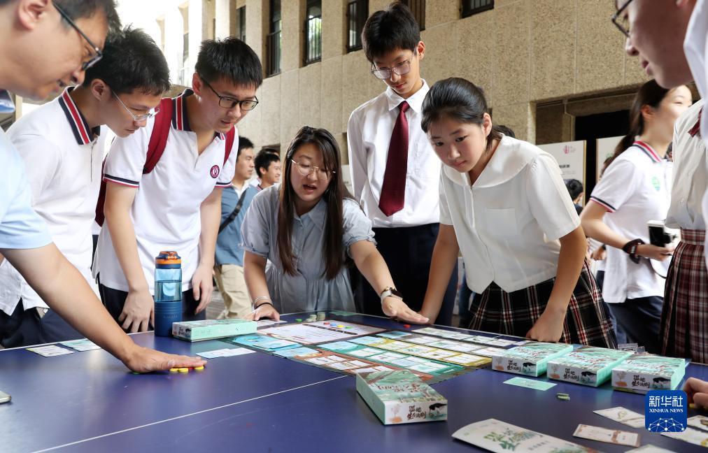 8月20日,同學(xué)們在科學(xué)集市上了解和體驗一款結合生物知識的“濕地生存法則”桌游。