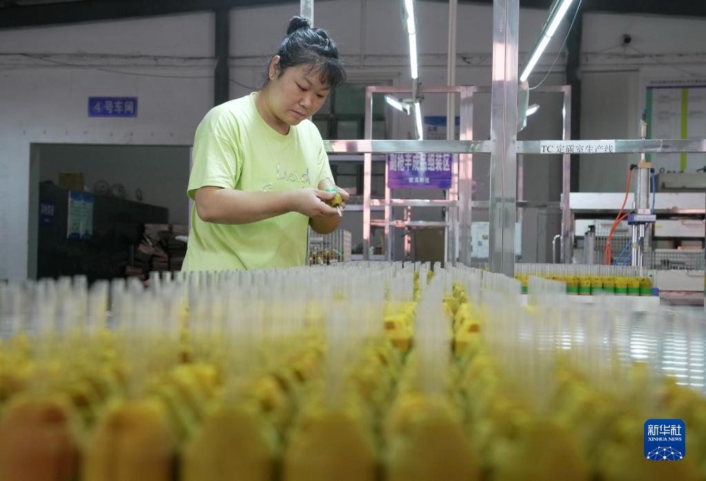 8月20日,工人在唐山市豐南區錢(qián)營(yíng)鎮李毫子莊村一家冶金傳感器企業(yè)的生產(chǎn)車(chē)間工作。