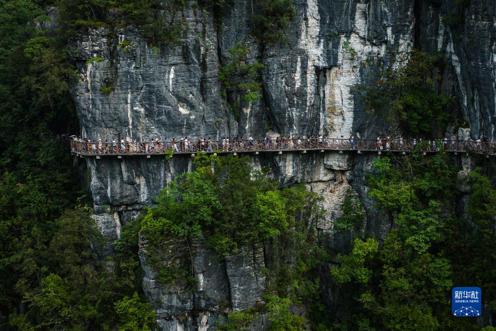 8月20日,游客在湖北省恩施州建始縣地心谷景區游玩(無(wú)人機照片)。