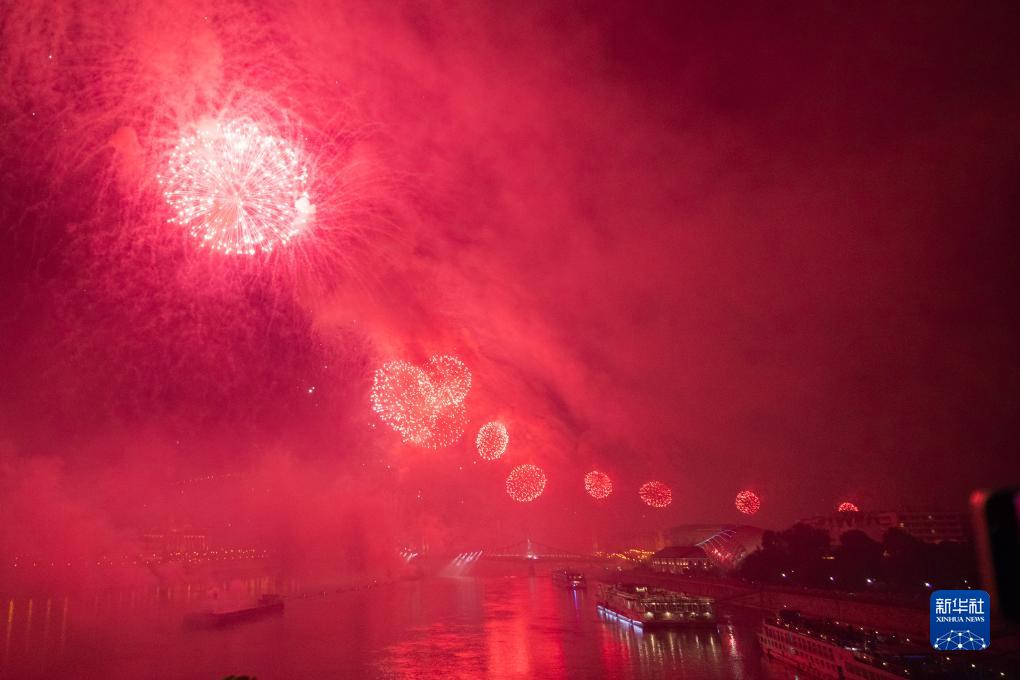 8月20日,煙花在匈牙利首都布達佩斯的多瑙河上空綻放。