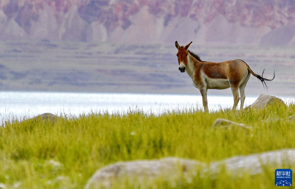 扎日南木錯湖畔的一頭藏野驢(8月19日攝)。