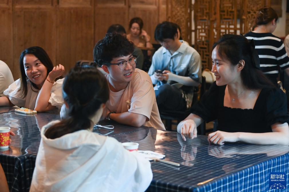 8月20日,“‘才’匯七夕·‘緣’來(lái)諸暨”青年人才七夕聯(lián)誼活動(dòng)在浙江省諸暨市東白湖鎮舉行,“十里紅妝”“尋愛(ài)之旅”“彩繪紙傘”“乞巧祈?!薄粋€(gè)個(gè)具有傳統文化韻味的游戲活動(dòng),讓在場(chǎng)的單身青年人才沉浸式體驗豐富多彩的民俗文化,交友結緣。