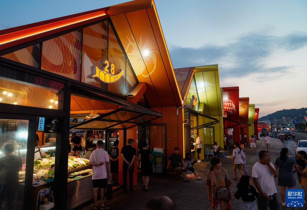 8月16日,浙江省舟山市沈家門(mén)海鮮夜排檔吸引了許多市民和游客。新華社記者 韓傳號 攝