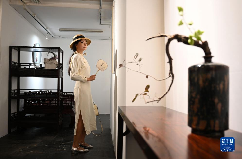 8月21日,觀(guān)眾參觀(guān)展出的家具。