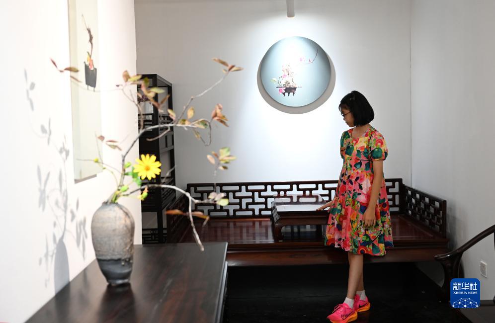 8月21日,觀(guān)眾參觀(guān)展出的家具。