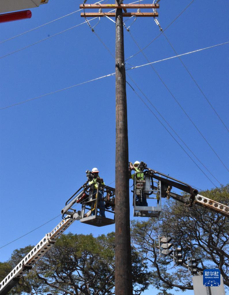 8月20日,工人在美國夏威夷州拉海納修復電力系統。
